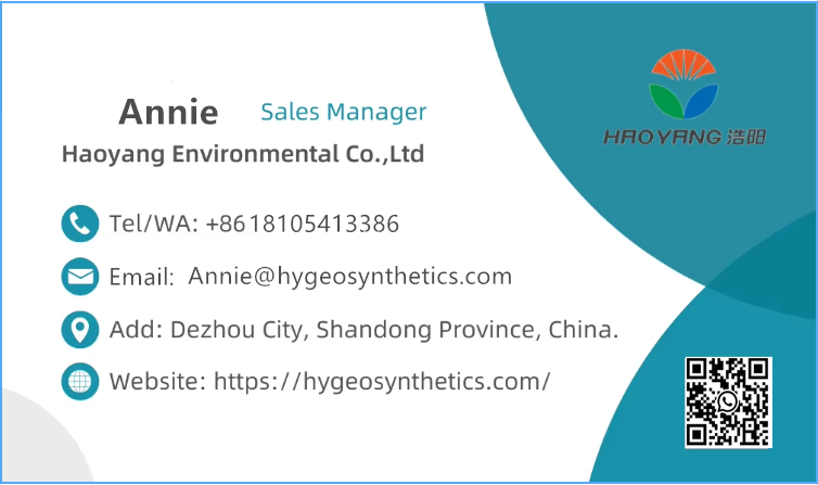 Haoyang Environmental Co., Ltd., yang berlokasi di Zona Pengembangan Industri Teknologi Tinggi Nasional Yucheng, Shandong, adalah perusahaan teknologi tinggi nasional dengan pengalaman 17 tahun dalam penelitian dan pengembangan serta produksi material geosintetik. Perusahaan ini juga merupakan Perusahaan Juara Tunggal Manufaktur Provinsi Shandong dengan pusat penelitian dan pengembangan "Satu Perusahaan Satu Teknologi" tingkat provinsi. Perusahaan ini memiliki peralatan produksi canggih dan tim penelitian dan pengembangan profesional, yang berfokus pada optimalisasi formula dan proses geomembran HDPE, dengan produksi tahunan sebesar 150.000 ton material geosintetik, memastikan produk berkualitas tinggi dan stabil untuk memenuhi beragam kebutuhan teknik.